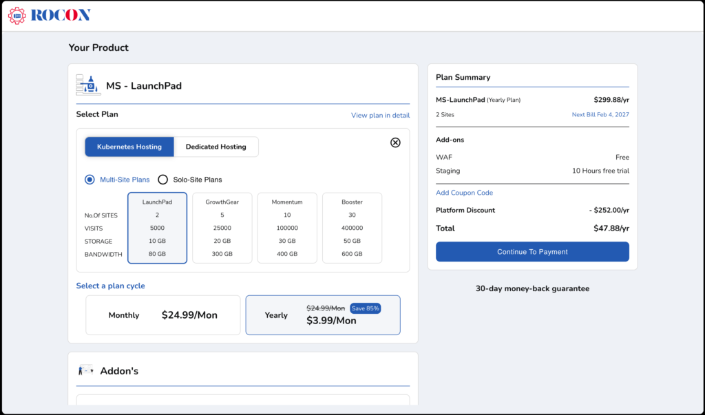 - Select your preferred billing cycle: Yearly or Monthly.